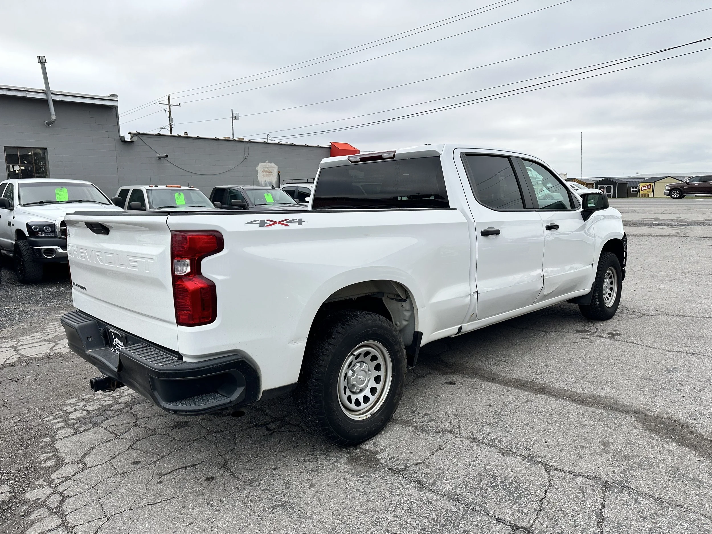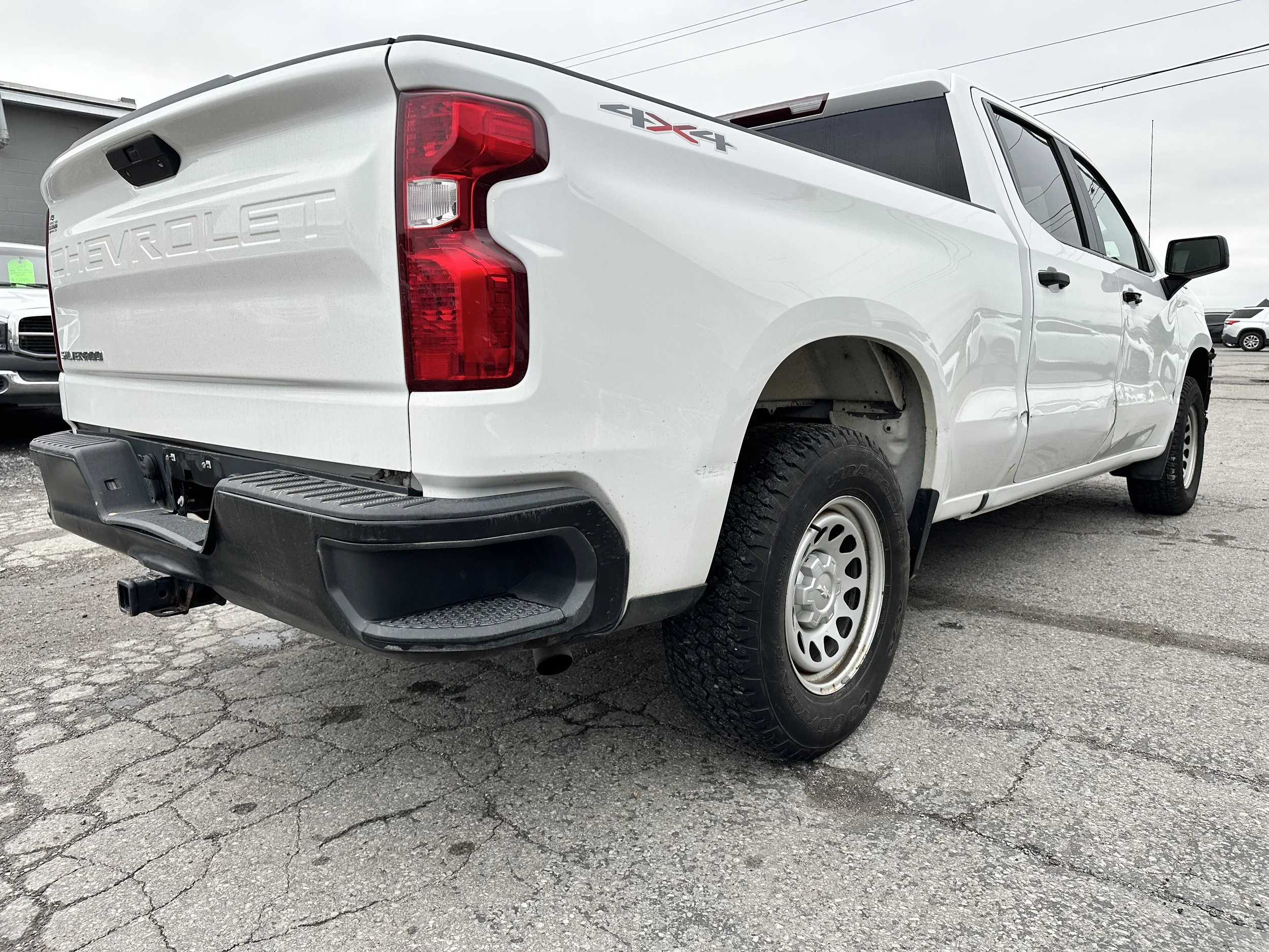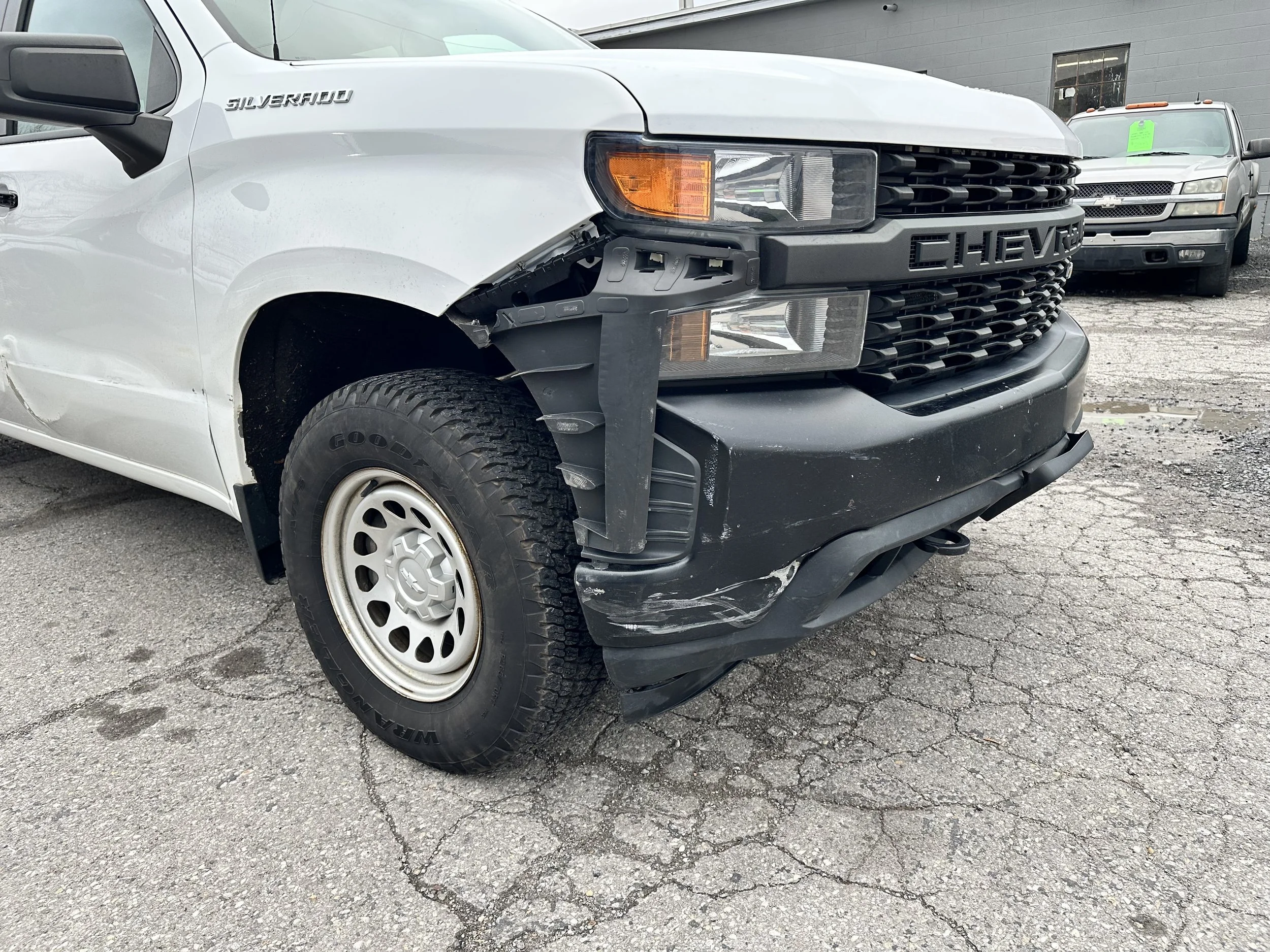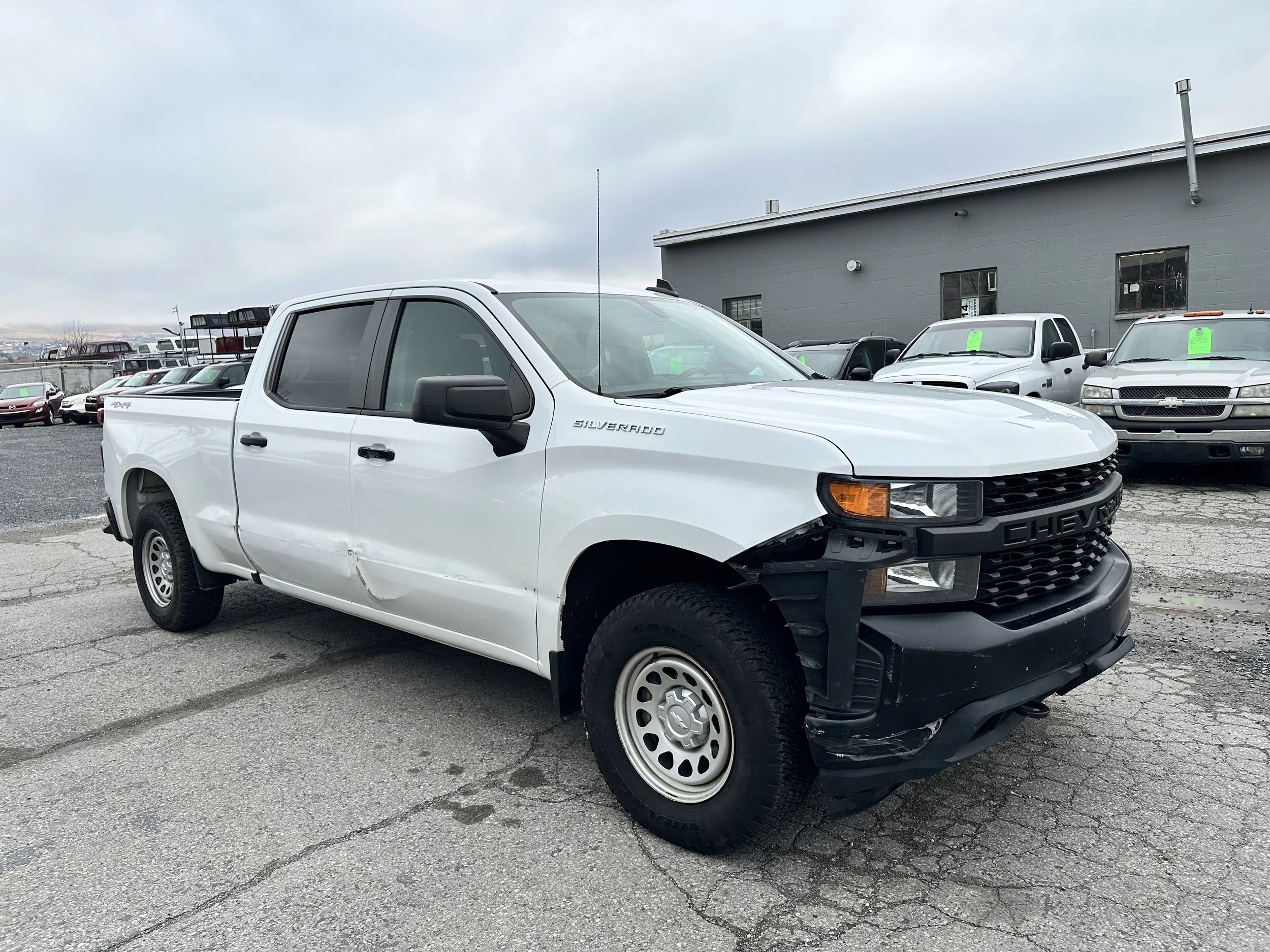 Clean title! 2019 Chevrolet Silverado 1500 WT with 104k miles. Automatic transmission, 4 wheel drive, 4.3L V6 engine. Runs and drives excellent! Lots of great features including vinyl flooring, spray in bedliner, tow package, power windows and locks, remote entry, two sets of keys/fobs, factory trailer brake controller, touchscreen with bluetooth, cruise control, auto headlights, seating for 6, crew cab configuration with 6.5' bed, on demand 4x4 and tons more. Interior is in excellent condition. Passenger side exterior has damage, please see photos. The truck does have a check engine light on for an EVAP code, we are planning on fixing as soon as we can get it in with our mechanic. Runs great, shifts great, 4x4 works great. Tires are in great condition, lots of tread life. History report shows 1 owner and no reported accidents. Contact us for more information or to schedule a test drive!